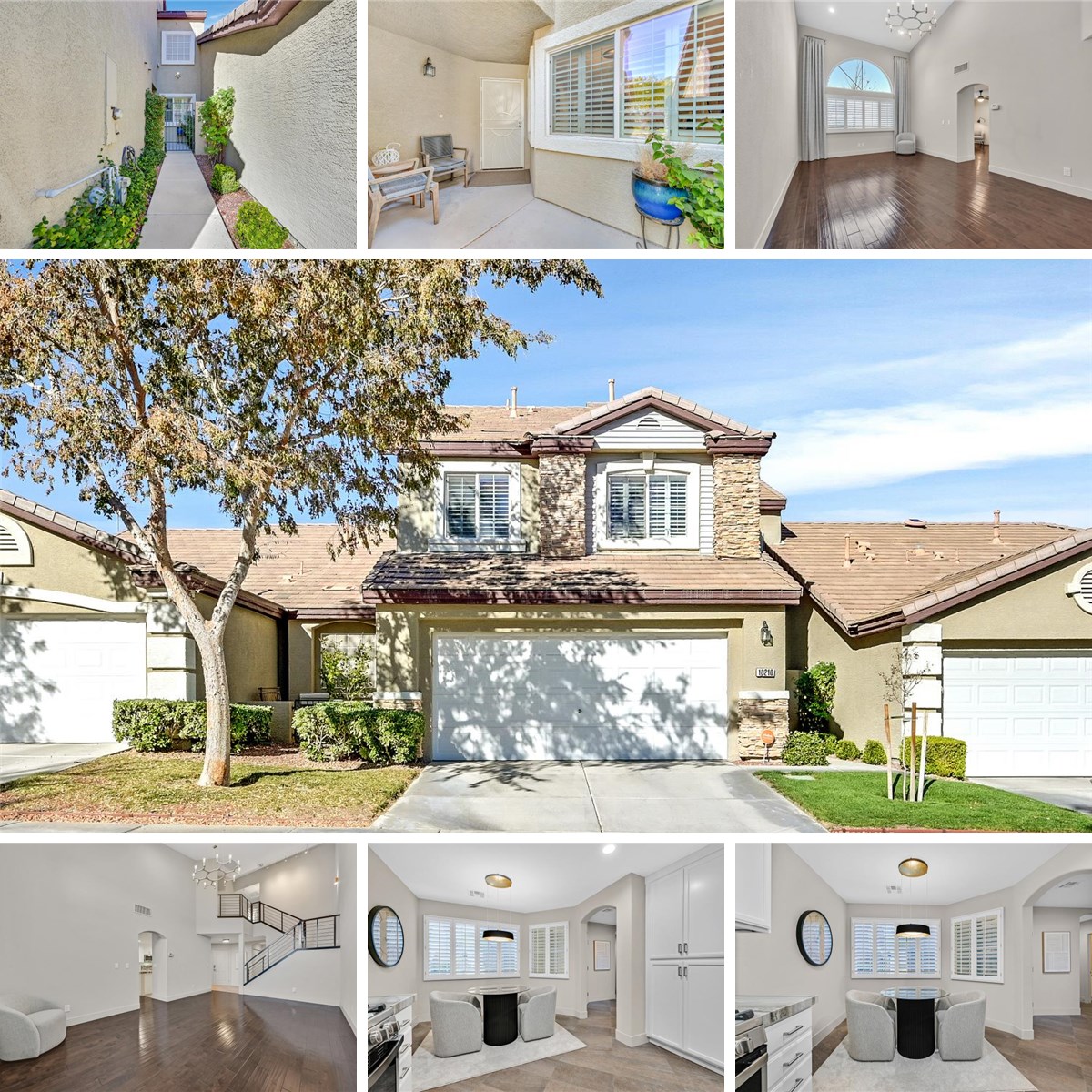 This pristine, beautifully remodeled Pulte townhome is perfectly situated in the highly sought-after Arbors village of Summerlin, offering convenient access to Downtown Summerlin shopping and dining. Located within the exclusive, gated Cottonwood Terrace community, this home is truly move-in ready and features an array of high-end upgrades: a stunning Chef's Kitchen with like-new shaker cabinets, upgraded granite countertops, a subway tile backsplash, and GE Profile appliances. The elevated finishes continue with engineered wood and porcelain tile flooring, updated modern stair railing and lighting fixtures, designer shutters, and an oversized custom organized closet in the primary suite. Recent peace-of-mind upgrades include renewed mechanical systems (A/C and Heating Units), making this an exceptional and worry-free opportunity