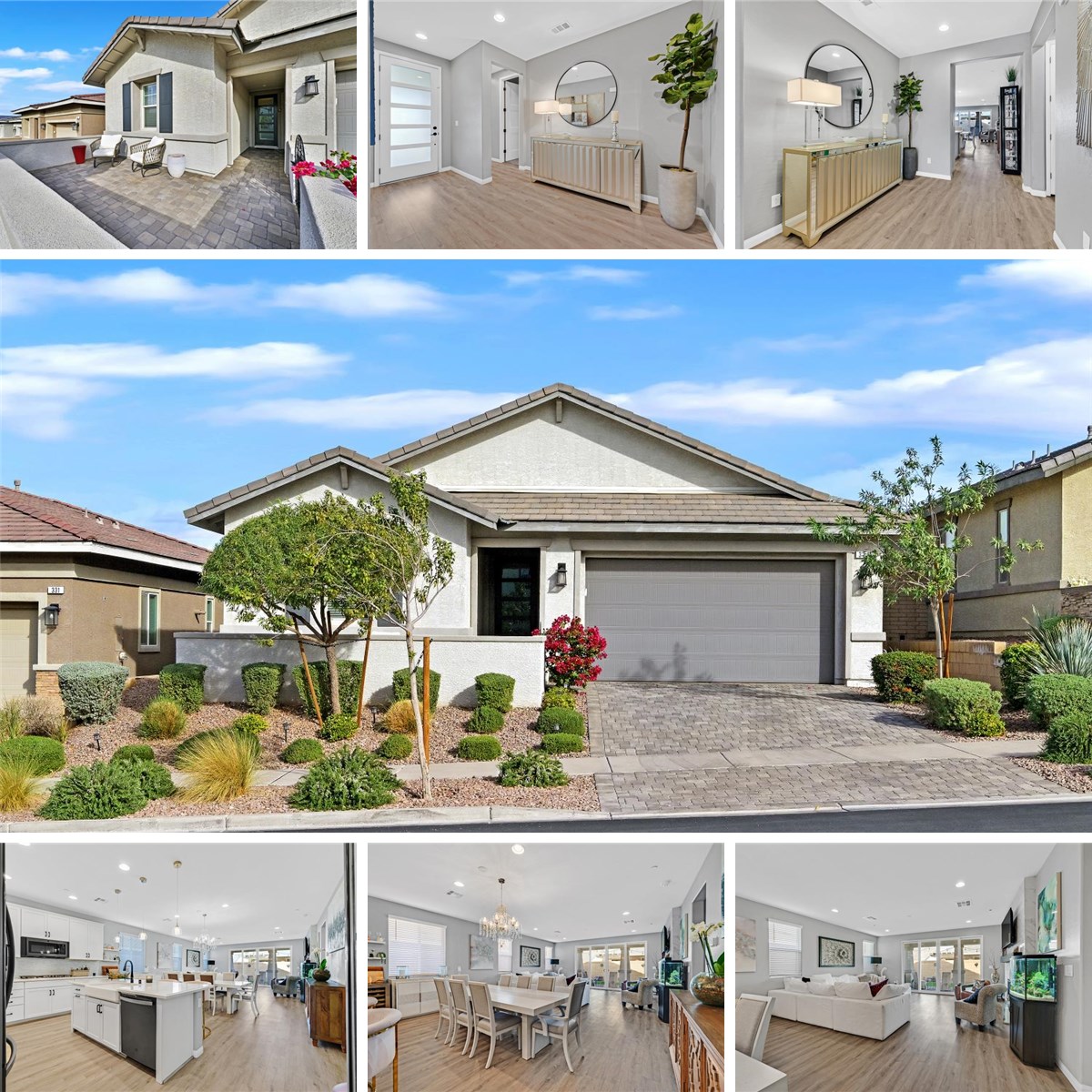 Experience refined living at 329 Silva Place, an elegant single-story residence nestled within the prestigious Cadence community of Henderson. This 4-bedroom, 3-bath home spans 2,151 square feet and showcases a collection of designer upgrades that elevate every room. The open-concept living spaces are warm, sophisticated, and thoughtfully arranged, leading to a beautifully crafted kitchen featuring a large center island, a gorgeous upgraded appliance package, and richly finished modern cabinetry that brings depth and character to the space. The primary suite exudes comfort and understated luxury, complemented by a spacious bathroom with a soaking bathtub, separate shower, and a generous walk-in closet. Sliding doors open to a tranquil backyard sanctuary, perfect for intimate gatherings or quiet moments outdoors. Ideally located near upscale dining, boutique shopping, and top-rated schools, Cadence delivers an amenity-rich lifestyle with lush parks, resort-style pools, and its signature 50-acre Central Park complete with splash pads, a fitness court, dog park, and miles of scenic trails. A residence that seamlessly blends elegance, comfort, and community.