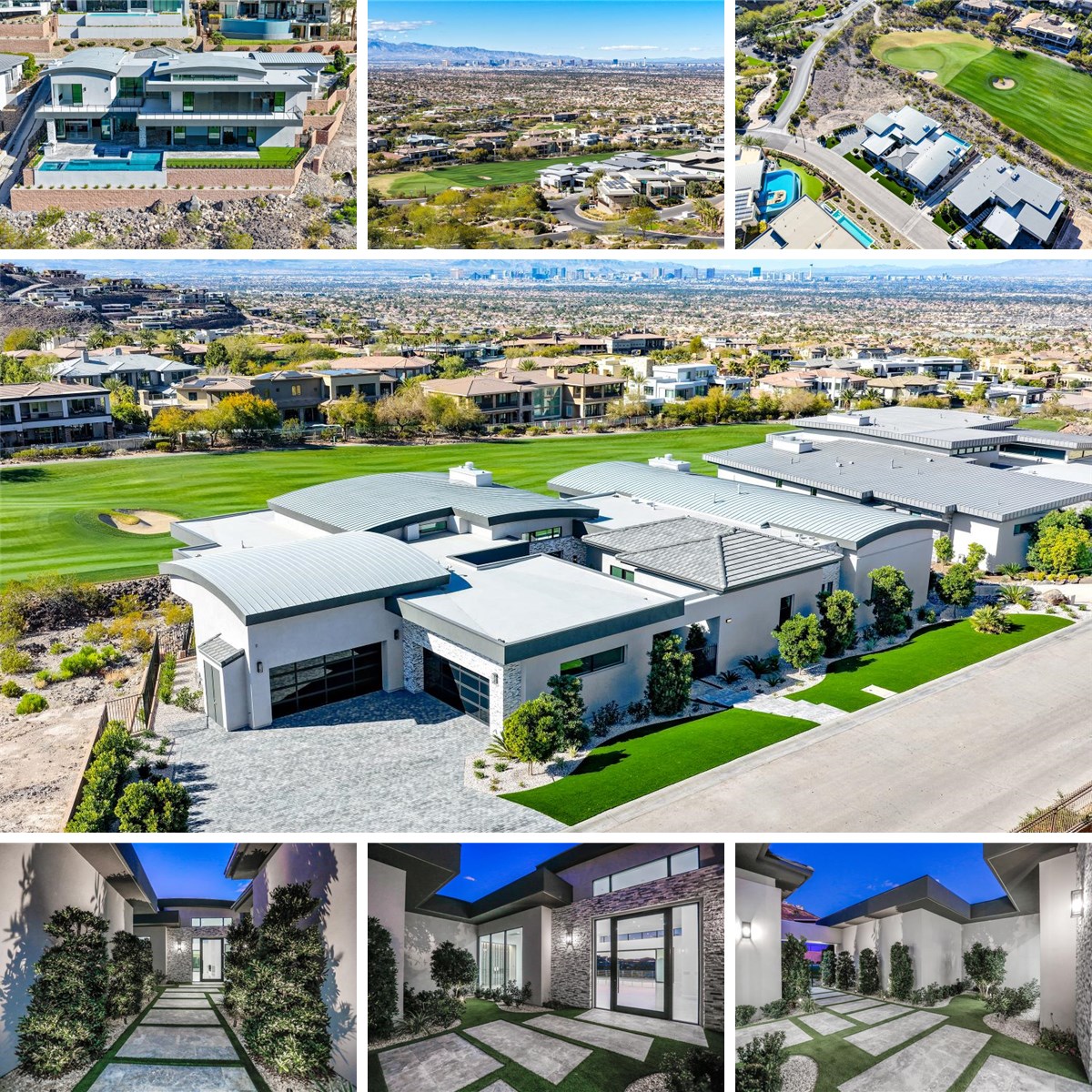 Welcome to 645 Majestic Rim Drive, an architectural triumph set behind the guarded gates of MacDonald Highlands, where modern design meets panoramic beauty along the 15th green of the prestigious DragonRidge Country Club. Newly completed and masterfully executed, this contemporary estate commands unobstructed views of the iconic Las Vegas Strip, offering a living experience as luminous as the skyline itself.